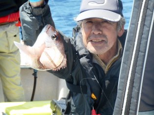 合間にイサキが良くアタッて真鯛のタナが変わったかな?。