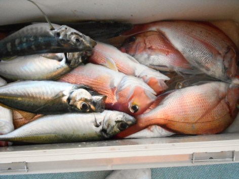 ※ オールナイト便・18時出船の明け方まで。料金・16000円、氷付き